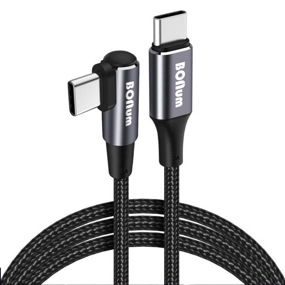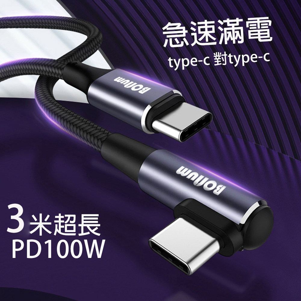 【BONum】100w PD USB 2.0彎頭type-c to type-c 3米編織快充線