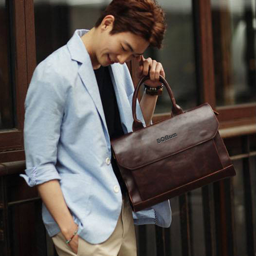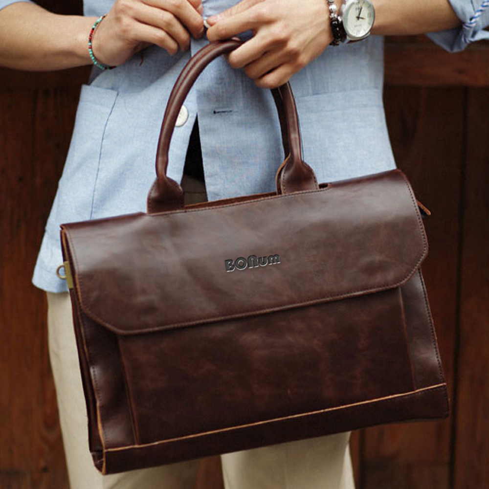 【BONum】男仕高端真皮細紋雙主袋商務公事包